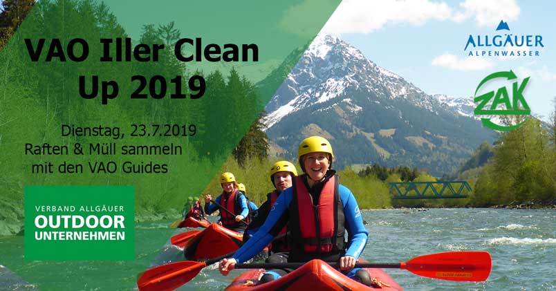 Am Dienstag den 23.7.2019 organisieren wir mit dem Verband Allgäuer Outdoorunternehmer (VAO) in Kooperation mit dem ZAK – Zweckverband für Abfallwirtschaft Kempten und dem Gymnasium Sonthofen den Iller Clean Up 2019.